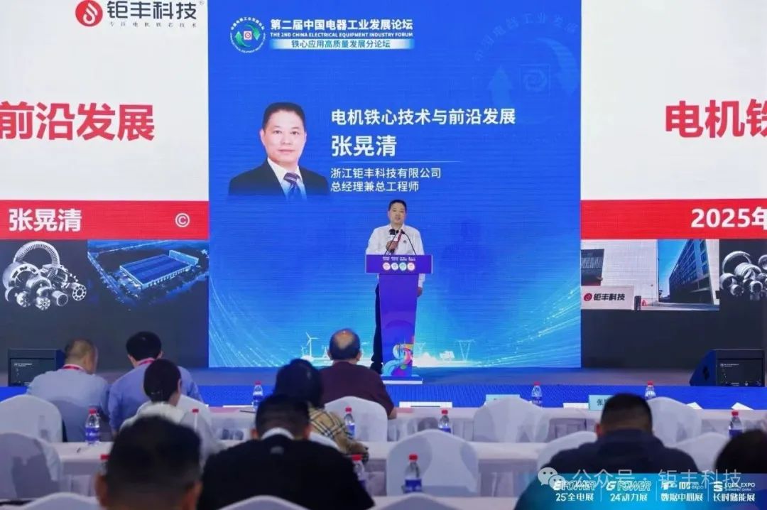 Zhang Huangqing, a Zhejiang Jufeng Technology Co., Ltd. vezérigazgatója és főmérnöke meghívást kapott a „Motor Iron Core Technology and Frontier Development” című jelentésre. A piaci kereslet folyamatos növekedése alapján mélyrehatóan elemezte az Iron Core műszaki útját a teljesítmény- és költségigények kielégítése érdekében. A vasmag gyártási technológiához való mély ismereteit és a vasmaggyártás területén elért legújabb kutatási eredményeit a résztvevők nagyra értékelték. Az ipari elit és szakmai tehetségek tenyésztésének és összegyűjtésének platformjaként a Jufeng Technology támogatja az iparág technológiájának folyamatos fejlődését és korszerűsítését. A Jufeng Technology továbbra is hozzájárul az ügyfelekhez, az iparágakhoz és a társadalomhoz.