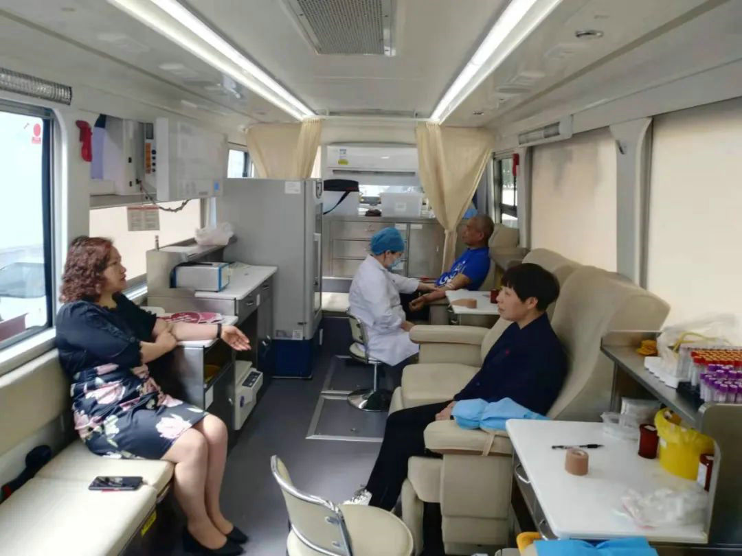 A képen a Shengzhou Központi Vérbank mobil véradó járműve látható